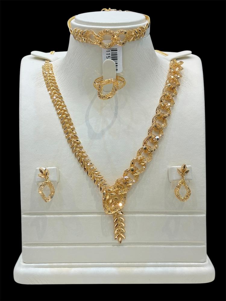 سيجعلك طقم الذهب المكون من قلادة وخاتم ساحر، وإسوارة وحلق أذن رائع تشعّين بالتفرد والتميز في أي مناسبة، فتصاميمه الهندسية البديعة من الذهب الخالص ستلفت الأنظار وتلامس قلوب الجميع. ستشعرين بالثقة والجمال، فهو يجمع بين الأناقة الكلاسيكية والتصميم العصري، مما يجعله مثالياً للمرأة العصرية التي تسعى للتميز في كل تفاصيل إطلالتها.احصلي على طقم الذهب الساحر من لؤلؤة الزهراء، واجعليه رمزاً لذوقك الرفيع وقوة شخصيتك، سيكون رفيقك المثالي في كل المناسبات، سواء كنتِ ترتدينه في لقاءات رسمية أو مناسبات خاصة.